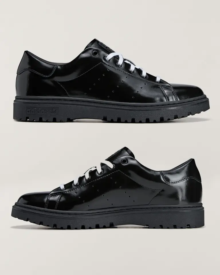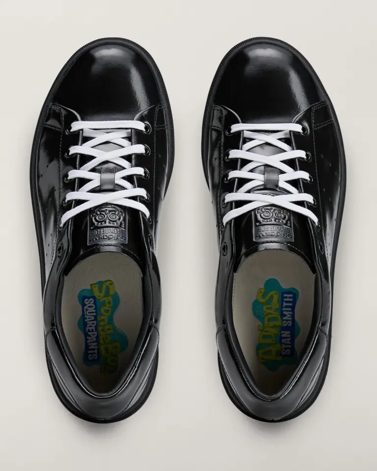 In the series, SpongeBob never parts with his perfectly polished black shoes, an essential part of his squeaky-clean cook uniform. Now, Adidas has brought that detail to life, creating a collector’s Stan Smith Freizeit that mirrors SpongeBob’s footwear with a glossy finish, contrasting white laces, and subtle character references throughout.