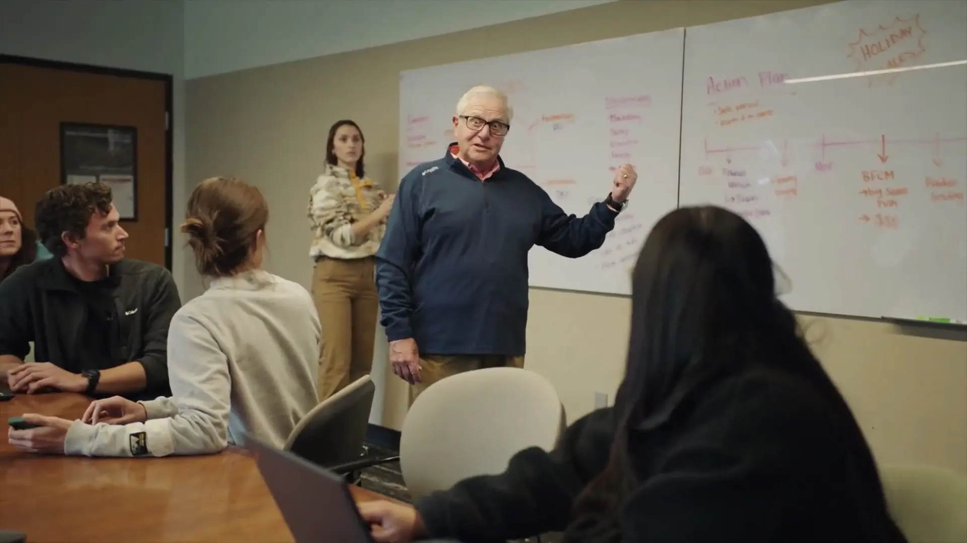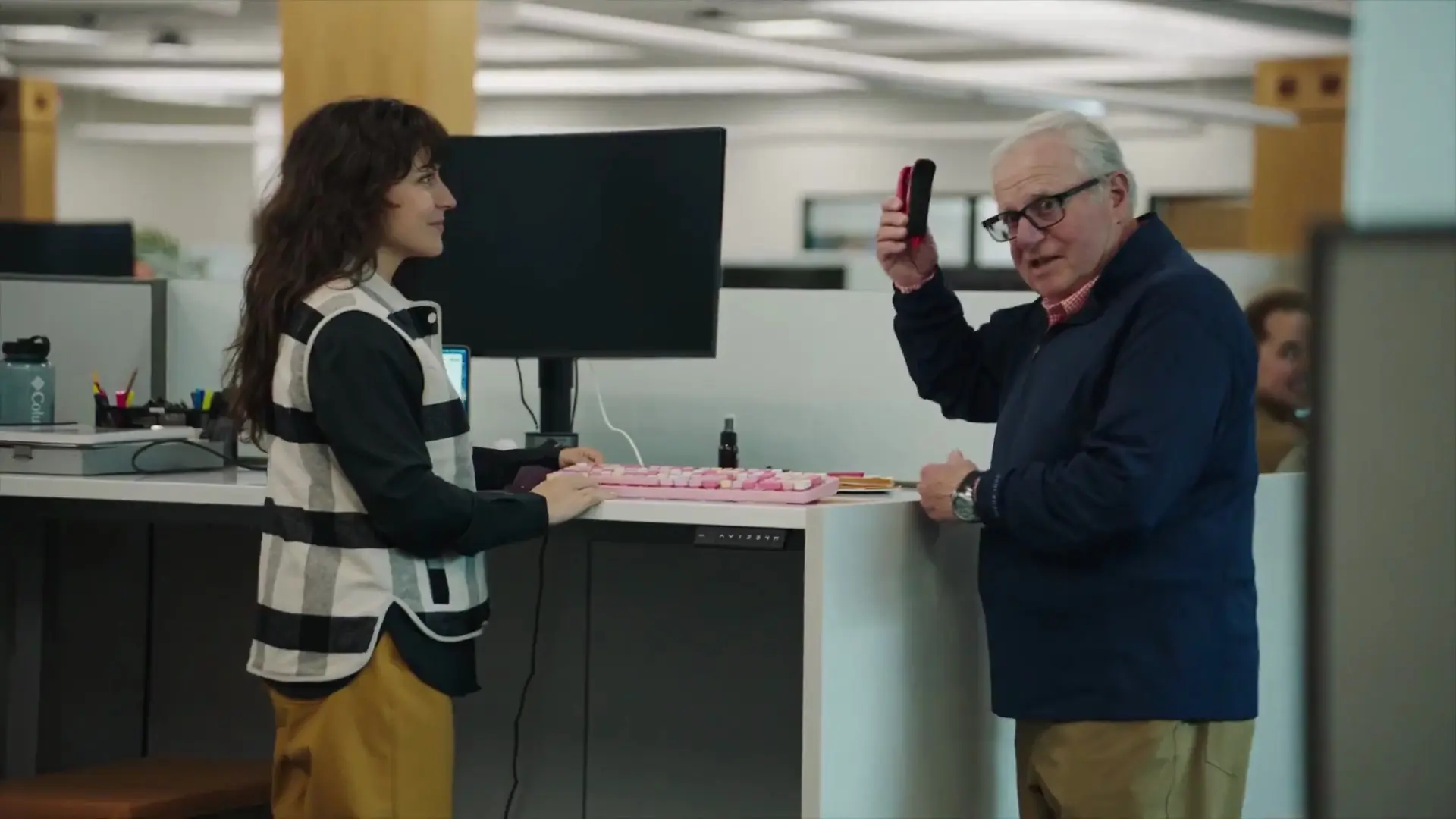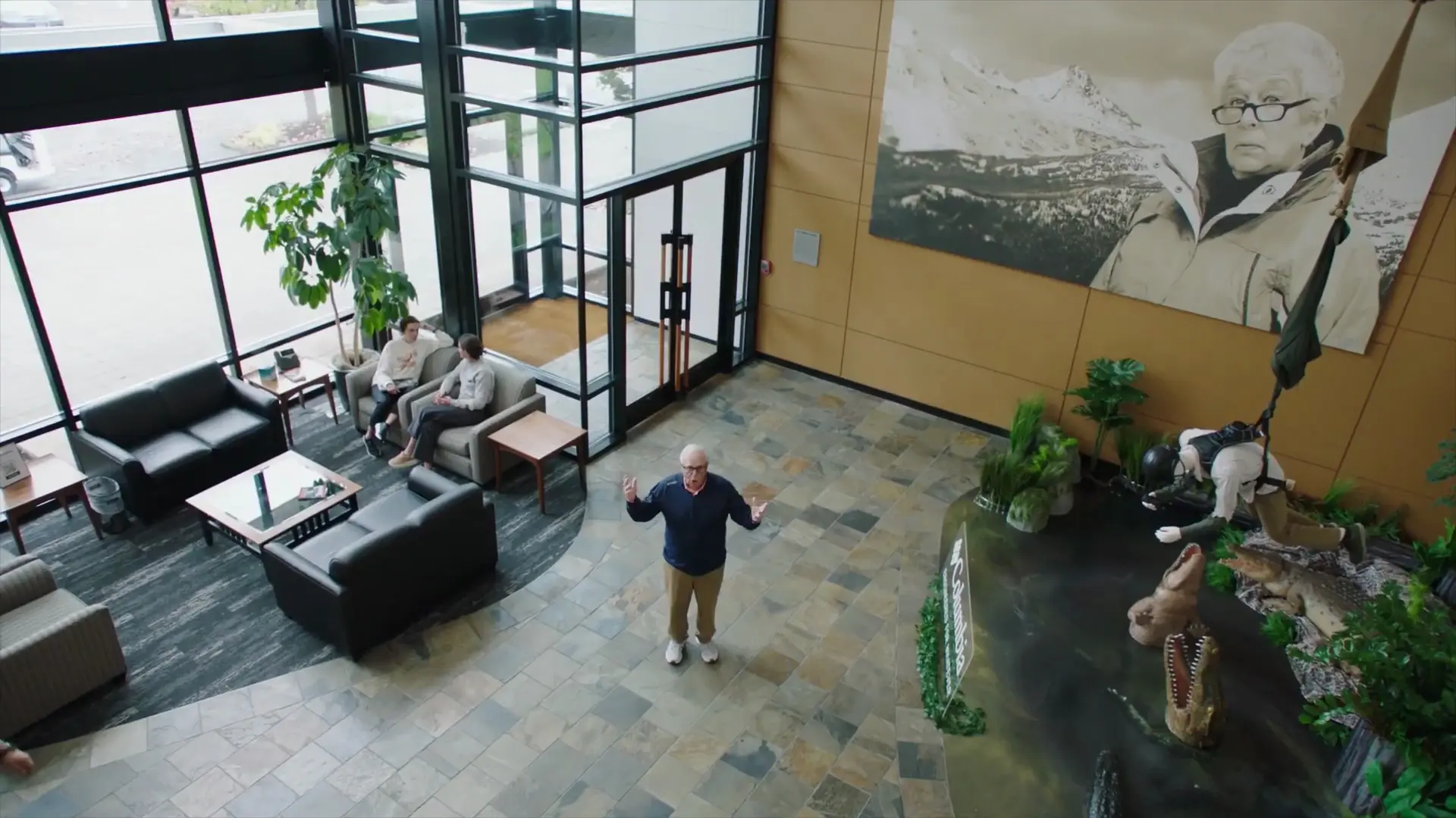 In the film, Boyle calmly walks through HQ listing off what the future winner would inherit: technical gear, office plants, a taxidermy beaver… all delivered with the emotional range of a man reading a warranty manual. The dryness is the joke, and it works.