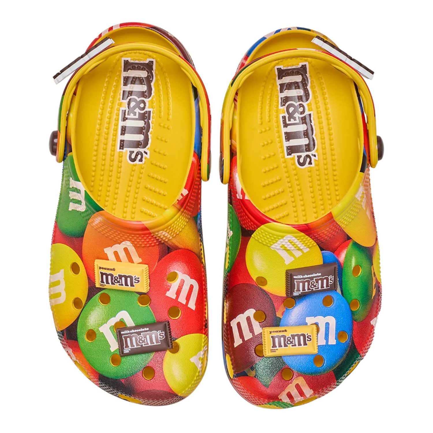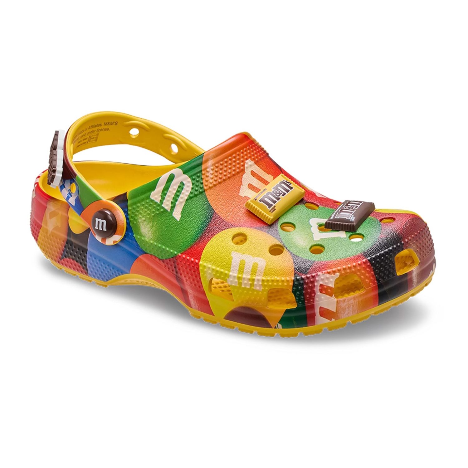 - Classic Clog M&M’s: a multicolored print inspired by the world of M&M’s, complete with Jibbitz shaped like candy bags and logos.