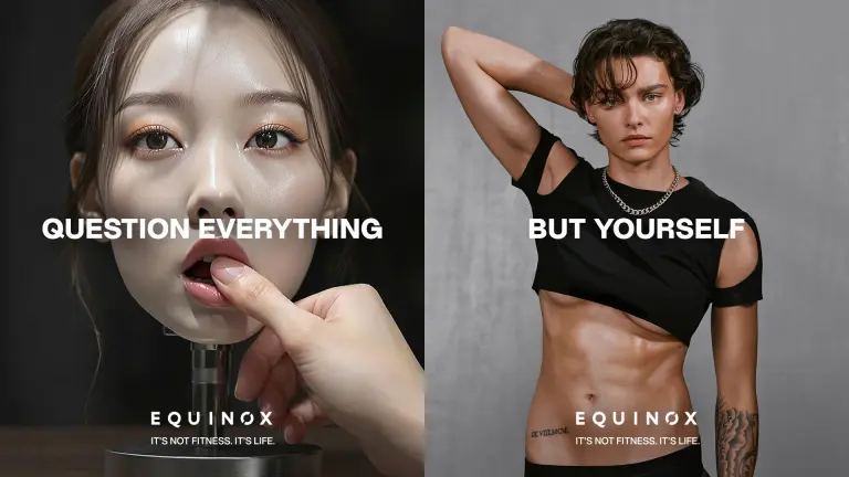 Rather than positioning itself as a moral referee, Equinox makes a strategic choice, defending the body as non-negotiable territory. AI can generate flawless imagery in seconds. It can’t replicate what the body feels, endures, and builds over time. That tension is the heart of the line: Question everything… except yourself.