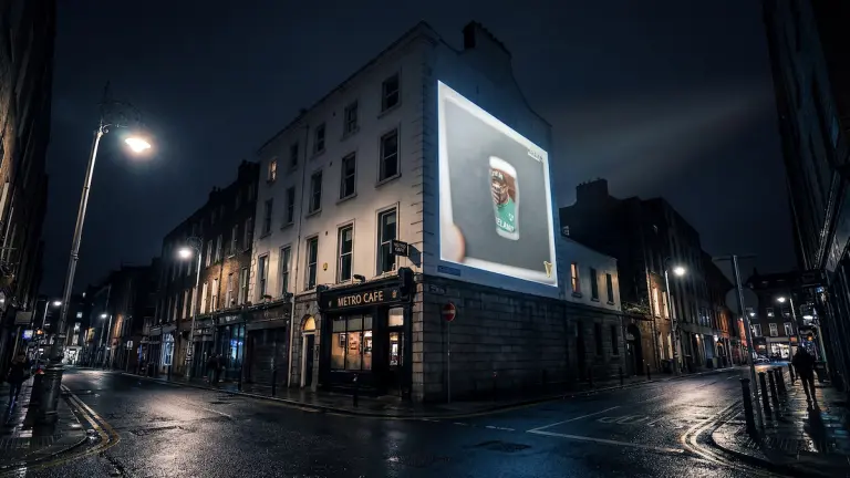 Guinness also extended the idea beyond the bar. Around Aviva Stadium in Dublin, the brand installed large-scale versions of the same pint-shaped frame, allowing fans to step inside and capture photos before and after the match. But the heart of the campaign remains the small piece of cardboard sitting under a pint.