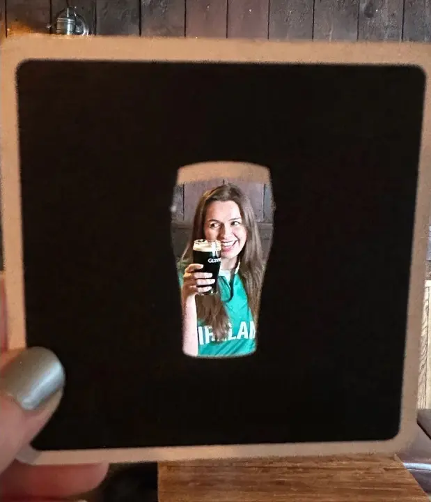 The idea is beautifully simple. Hold the coaster up to your phone, and it instantly becomes a physical photo frame. A group of friends in the pub, a pre-match pint, a hug after a try, suddenly every moment fits inside the unmistakable shape of a Guinness.