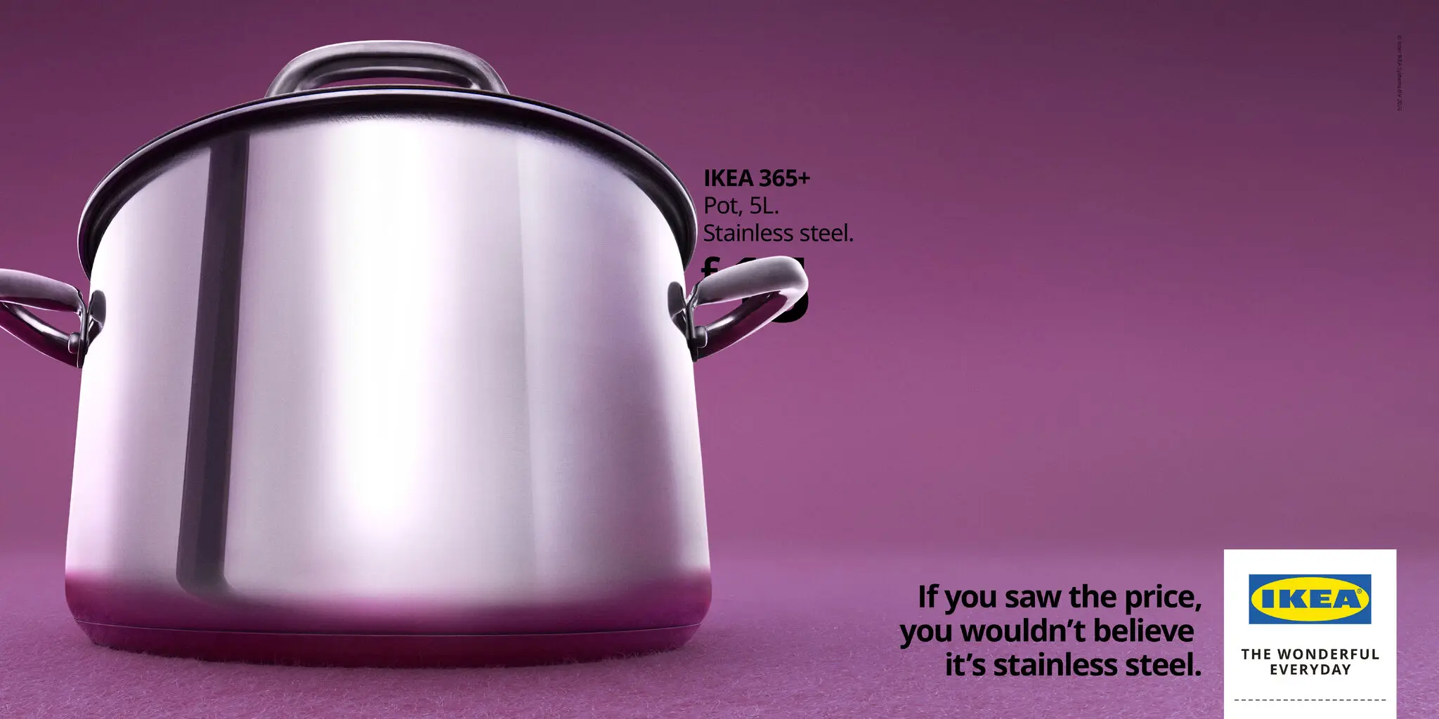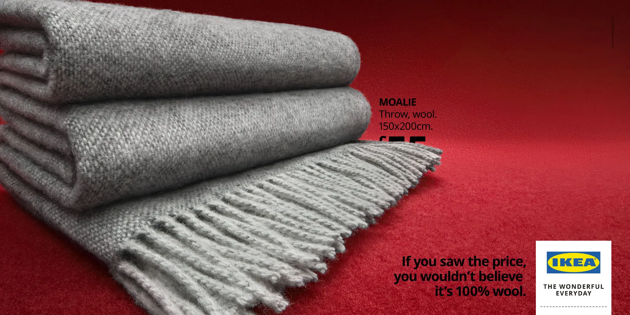 The campaign’s copy is built as a twist. Each execution opens with the same promise: “If you’d seen the price, you’d never believe that…” then lands on a material truth: “…it’s cast iron,” “it’s velvet,” “it’s 100% wool.” The number never appears; instead, the gap between expectation and reality does the talking.