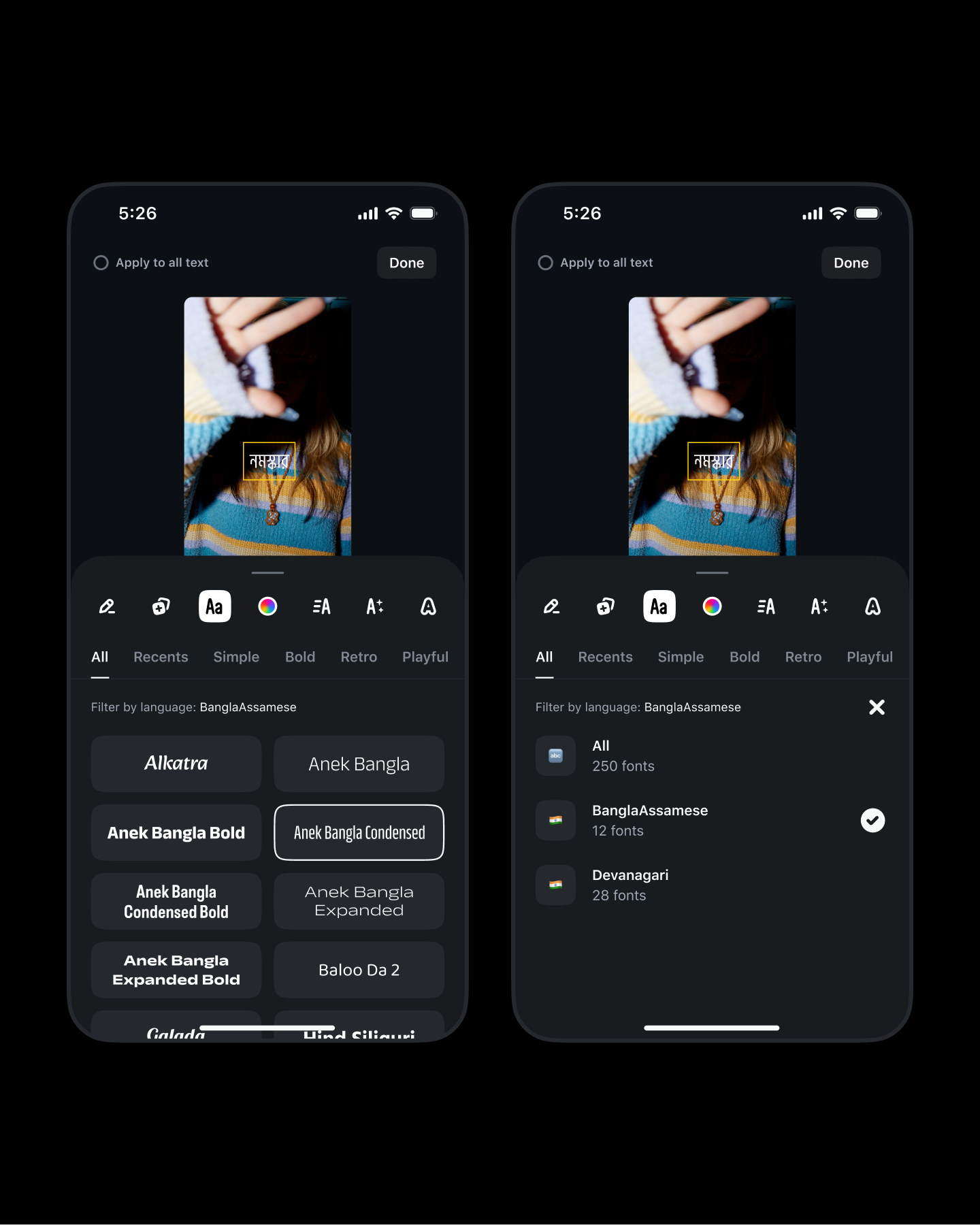Instagram is also adding new Indian script fonts inside Edits, including Devanagari (Hindi, Marathi) and Bengali–Assamese (Bengali, Assamese)