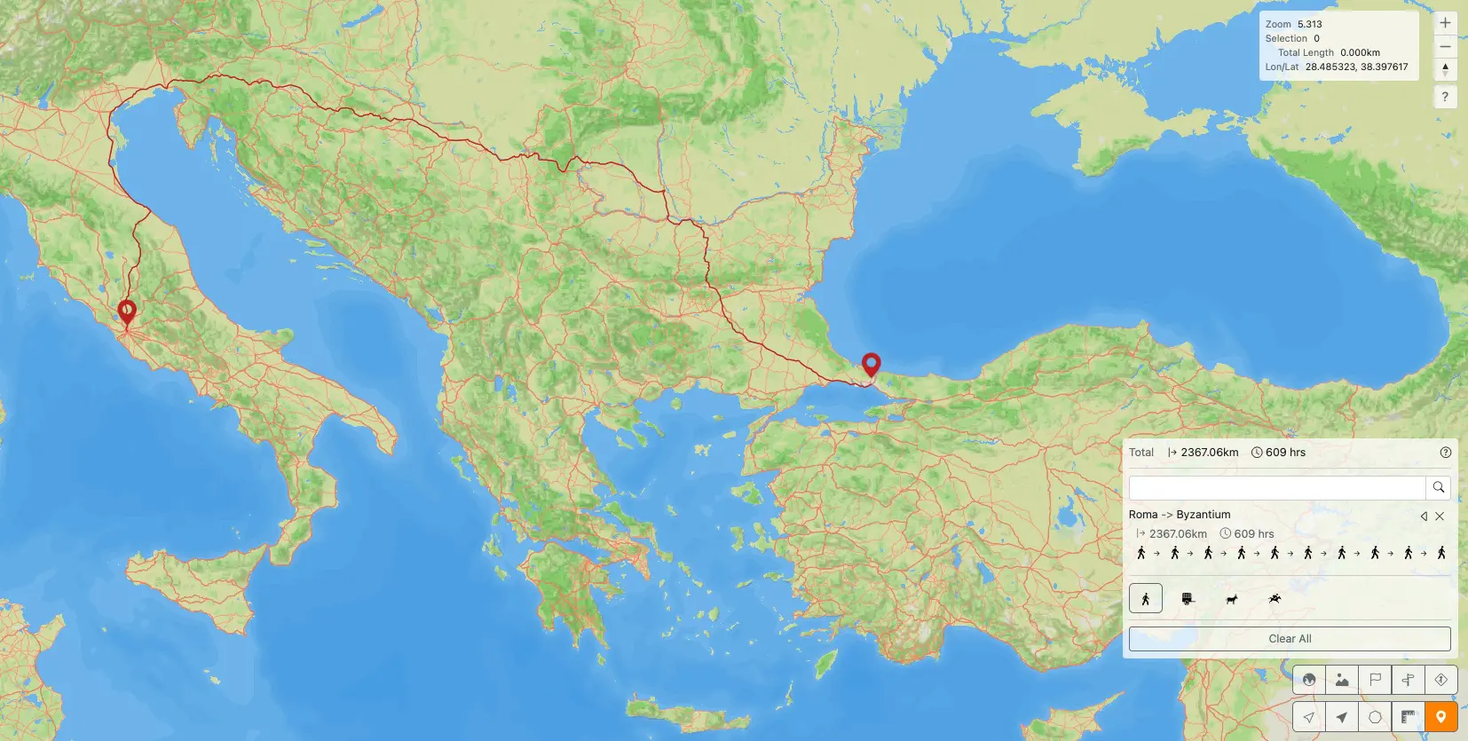At itiner-e.org, anyone can explore the map in high resolution, compare it to modern borders, trace routes on foot, horseback, or ox cart, or even see how long it took a soldier to reach an outpost. For the first time, we can observe the daily machinery of an empire at the scale of its roads.