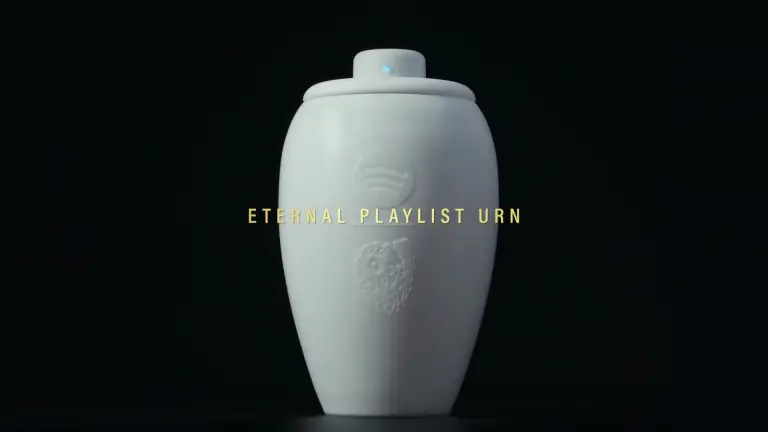The generator uses both user responses and Spotify listening history to curate a mix described as “fit for a lifetime… and beyond.” The playlist can then be shared with loved ones and streamed directly through the urn’s built-in speaker — closing the loop between data, music, and posthumous performance.