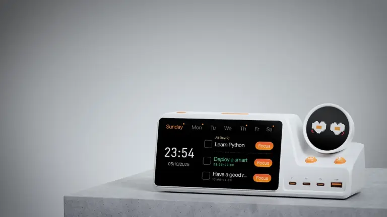 Tasks can be physically checked off on the device, turning daily progress into something tactile and visible. Beyond scheduling, ZIEA also functions as a powerful charging hub capable of powering a laptop, smartphone, and other accessories, reducing cable clutter and streamlining the workspace.